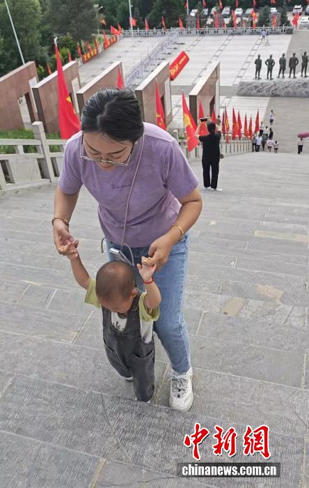 蹣跚學步的孩子正在攀爬象征紀念115師的115級臺階。 記者 郎朗 攝