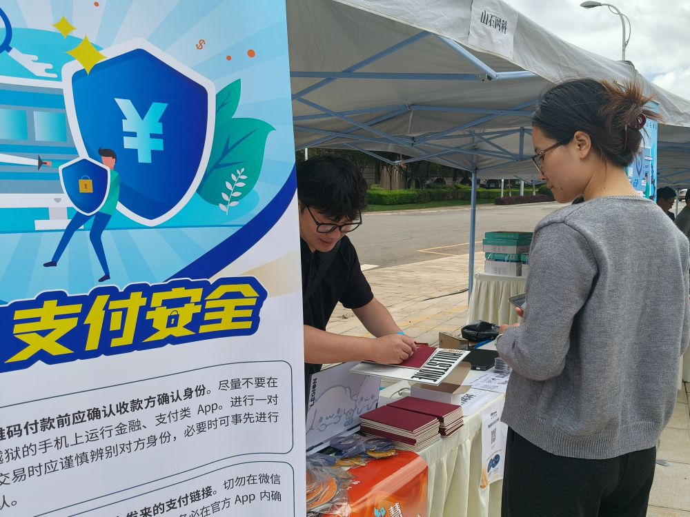 校園的露天廣場上還安排有網(wǎng)絡(luò)安全知識趣味問答活動(dòng),吸引學(xué)生參與,讓他們在輕松愉快的氛圍中鞏固了反詐知識。還有工作人員向路過的學(xué)生發(fā)放反詐宣傳手冊。