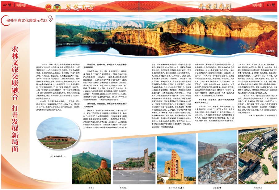“十四五”以來,偏關(guān)生態(tài)文化旅游示范區(qū)始終堅(jiān)持以習(xí)近平新時(shí)代中國特色社會主義思想為指導(dǎo),全面貫徹黨的二十大及二十屆歷次全會精神,按照省市部署要求,堅(jiān)定踐行綠色發(fā)展理念,深入實(shí)施“三綠”發(fā)展戰(zhàn)略,向新發(fā)力,逐綠前行,高質(zhì)量發(fā)展駛?cè)肟燔嚨?。老牛灣、紅門口地下長城2個(gè)4A級景區(qū)成功創(chuàng)建,乾坤灣獲批省級旅游度假區(qū);長城一號旅游公路偏關(guān)老牛灣段入選全省旅游公路28個(gè)精品示范段之一;老牛灣村獲得“中國美麗休閑鄉(xiāng)村”和“農(nóng)家樂特色村”雙稱號,入選“中國慢生活休閑體驗(yàn)區(qū)”,被中央宣傳思想文化工作領(lǐng)導(dǎo)小組評為第七屆全國文明村;水泉村獲評省級鄉(xiāng)村旅游重點(diǎn)村;黃河宿集入選首批山西省總工會職工療休養(yǎng)服務(wù)點(diǎn)名單。